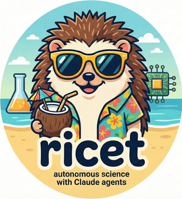 ricet is a CLI tool and framework that manages the full lifecycle of scientific research projects. It pairs Claude Code with eight research skills (slash commands), a persistent knowledge system that compounds insights across sessions, reproducibility enforcement, and a complete paper pipeline -- so you can focus on the science while automation handles the scaffolding.